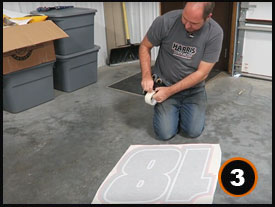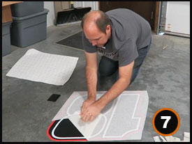 Using a squeegee firmly press down starting in the center of your graphic moving up and down. Be careful to avoid wrinkles or bubbles by squeegeeing with overlapping strokes.