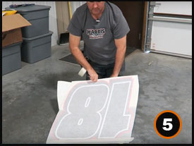 Flip up your graphic and remove the wax liner (backing) until your graphic is fully exposed.