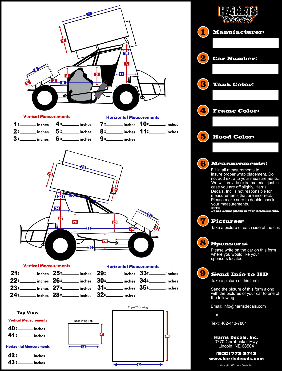 Take your race car design to the next level with a race car wrap from Harris Decals. Below you will find pricing for your micro/mini sprint. When your car looks good you race good! We have been providing race car wraps since 2005, so you can trust that we understand the details of your type of car unlike your local sign shop that doesn't understand what you are talking about.